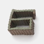 High fired stoneware, satin green glaze, speckled brown clay.