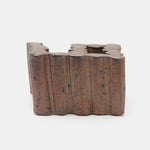 Dark brown speckled clay with ash patina, wood fired at Driving Creek, Coromandel, NZ.